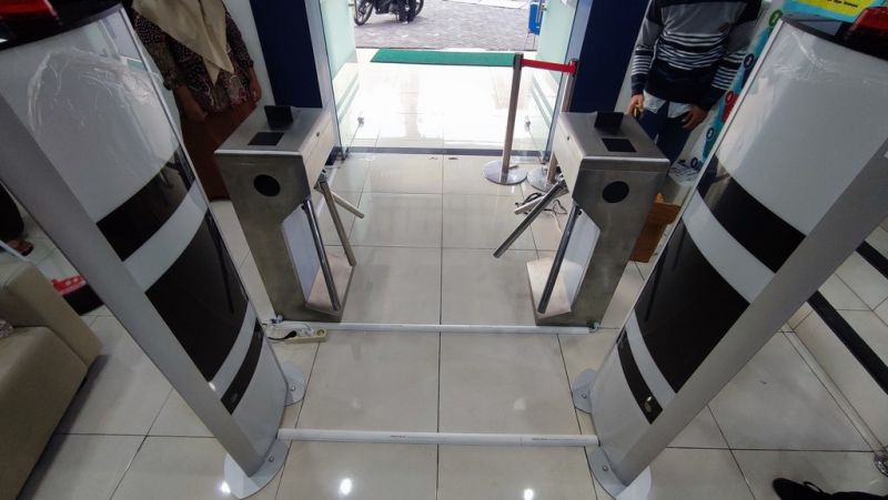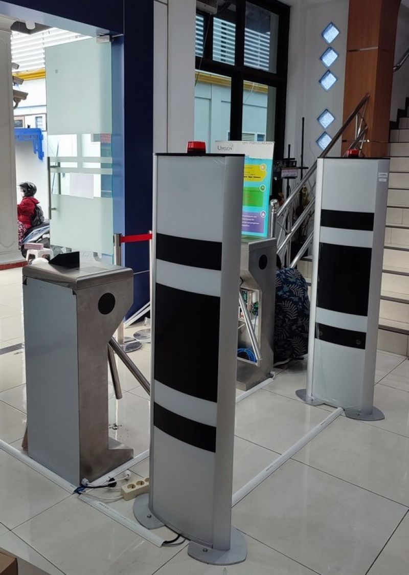 Sistem perpustakaan meliputi gerbang pengaman, sirkulasi, dan stock opname menggunakan teknologi RFID (UHF). Dilengkapi dengan Turnstile yang dapat dibuka dengan kode QR / Barcode untuk pintu masuk.