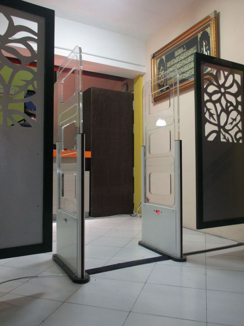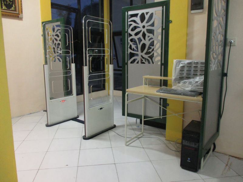 Sistem perpustakaan untuk peminjaman meliputi gerbang pengaman dan sirkulasi menggunakan teknologi RFID (HF)